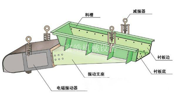(5)由于給料槽中的物料在給料過(guò)程中連續(xù)地被拋起,并按拋物線的軌跡向前進(jìn)行跳躍運(yùn)動(dòng),因此給料槽的摩損較小。